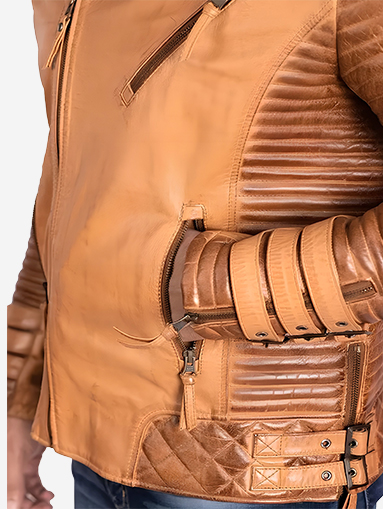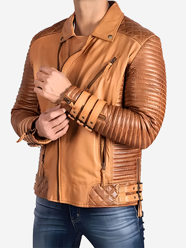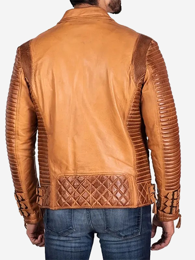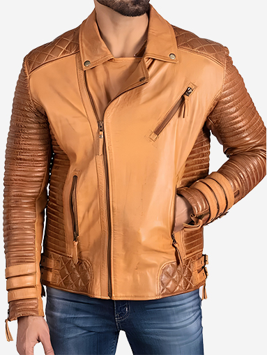 Ride in style with the Adrian Quilted Tan Brown Biker Leather Jacket for Men. A premium piece blending rugged durability with modern fashion