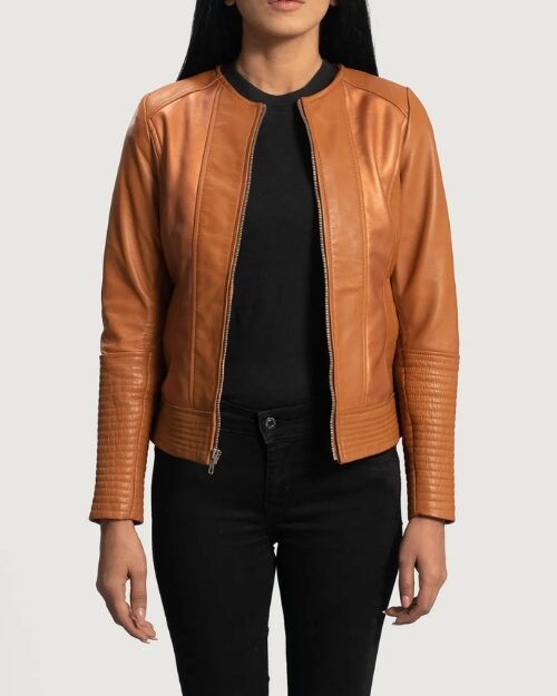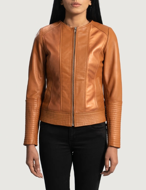 Chic Clean Tan Leather Biker Jacket