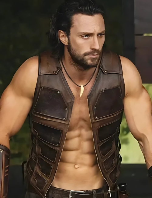 The Kraven the Hunter Sergei Kravinoff Brown Leather Vest blends classic leather strength with bold cinematic inspiration for modern men