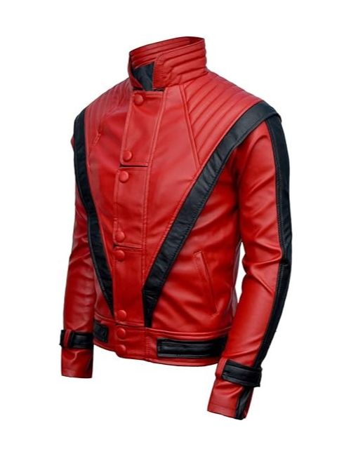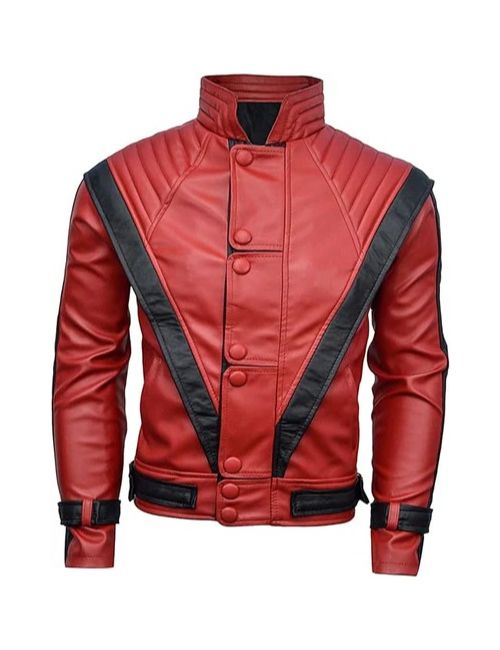 - Thriller-Inspired Design: With bold Red Premium PU faux leather and signature black V-shaped stripes, this jacket revives the electrifying energy of the 80’s – a must have for true pop culture fans.