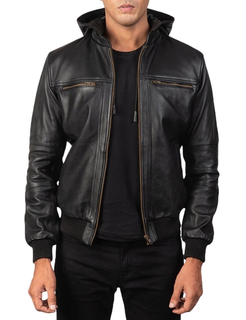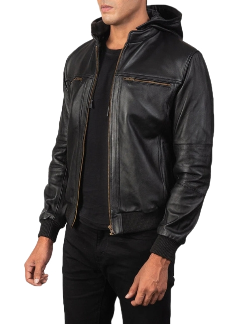 11 reviews for Smooth Black Hooded Leather Jacket For Men’s