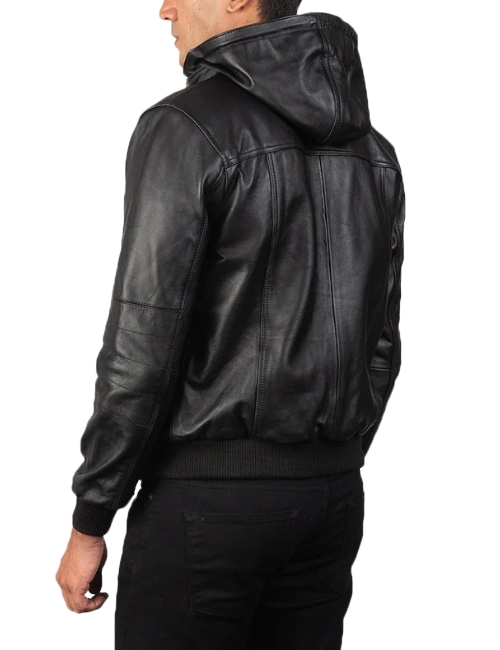 Stay sleek and versatile with the Smooth Black Hooded Leather Jacket for Men, designed for modern urban style