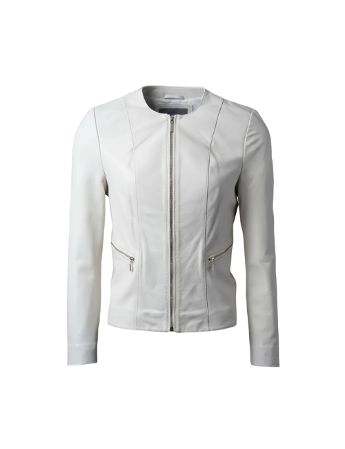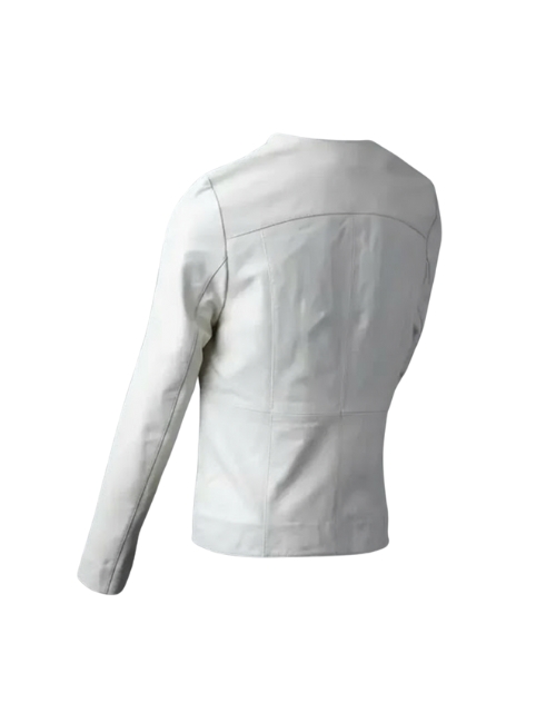 13 reviews for Women’s White Collarless Leather Fashion Jacket